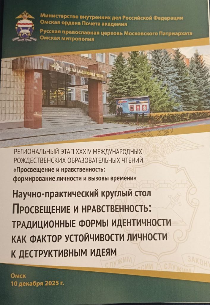 10 декабря 2025 г. в Омской академии МВД проведена работа круглого стола по теме: «Просвещение и нравственность: традиционные формы идентичности как фактор устойчивости личности к деструктивным идеям».